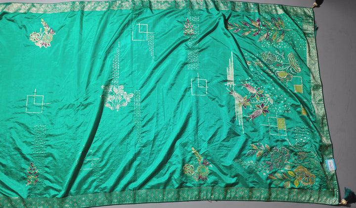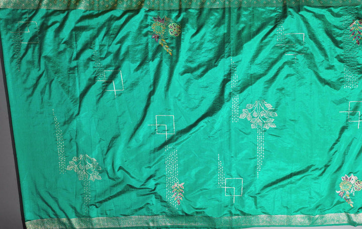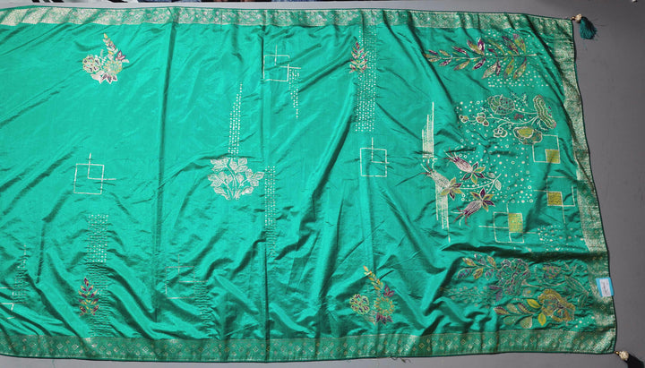 Enchanting Teal Floral Tapestry Unstitched Suit",