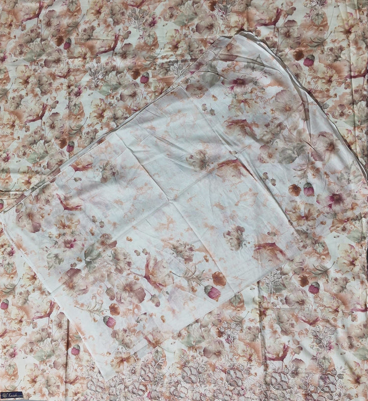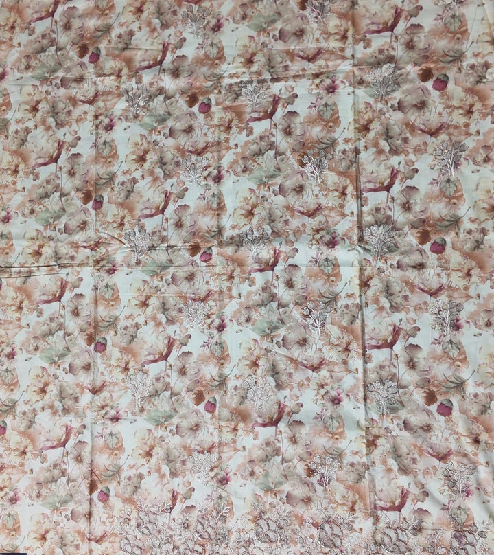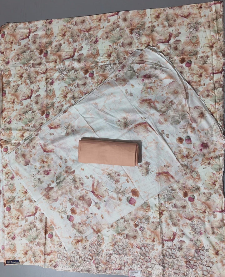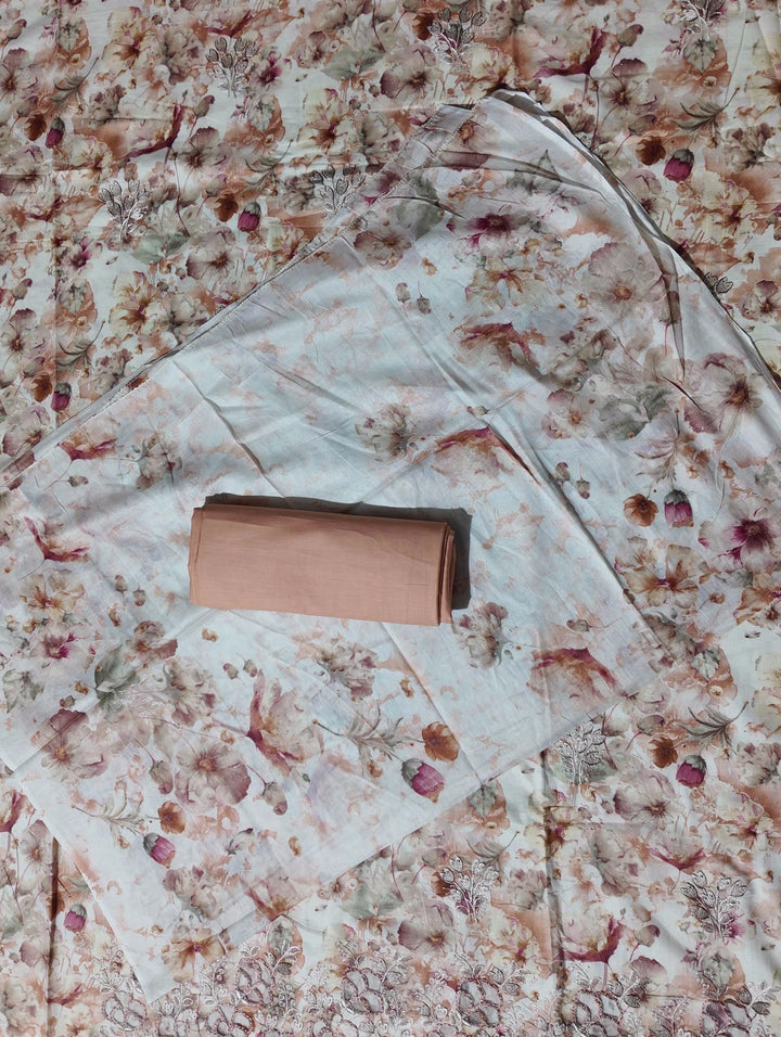 Dive into sophistication with this exquisite unstitched suit. Adorned with intricate floral embroidery, the fabric showcases a delicate symphony of pastels that effortlessly captures the essence of timeless elegance. Ideal for festive gatherings and casual outings alike, this fabric offers unrivaled comfort and a flattering drape that suits every body shape. \n\nCrafted with meticulous attention to detail, the lightweight and breathable material ensures you stay comfortable throughout the day, whether it’s a bustling celebration or a serene afternoon. The gentle floral patterns exude a serene charm, making it perfect not just for personal wear but also as a thoughtful gift for loved ones. \n\nEasy to care for, this fabric can be machine washed on a gentle cycle, allowing for hassle-free maintenance without compromising on quality. Tailor it to your personal style and make a statement wherever you go. Elevate your wardrobe with a piece that's as unique as you are, priced at an accessible ₹1380.0. Transform your fashion game with this versatile and stylish ensemble today.