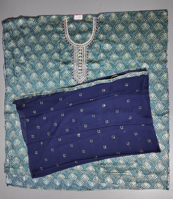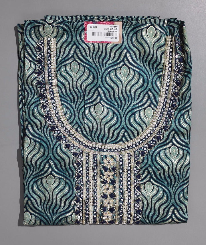 Step into sophistication with our exquisitely designed unstitched suit in a striking teal palette, intricately adorned with a mesmerizing pattern that echoes timeless tradition. Crafted for both style and comfort, this ensemble allows you to tailor your fit, ensuring you feel as fabulous as you look. The breathable fabric offers effortless wear, making it ideal for festive gatherings or intimate celebrations. Delight in the ease of maintenance, perfect for those who adore fashion without the fuss. Elevate your wardrobe with this masterpiece that blends beauty with practicality, allowing you to showcase your unique flair while enjoying supreme comfort. Immerse yourself in the luxurious allure of this garment and make it your go-to choice for unforgettable moments.