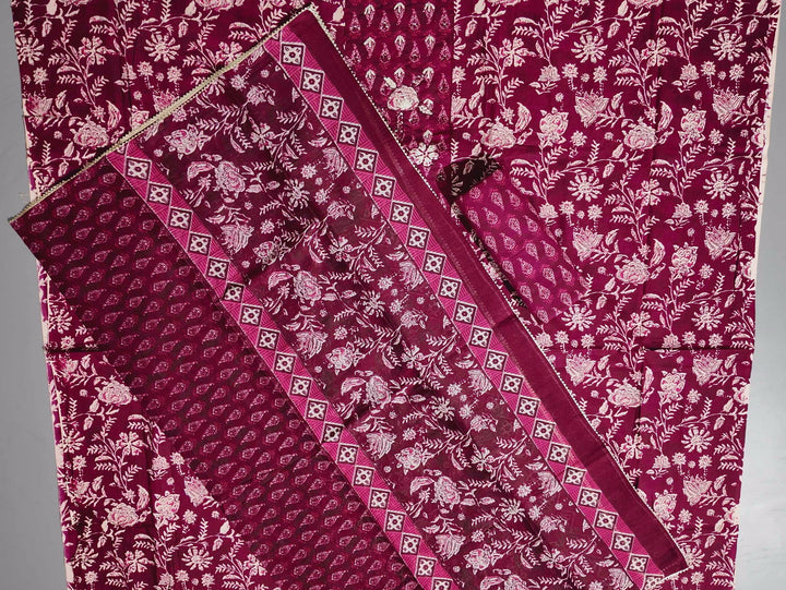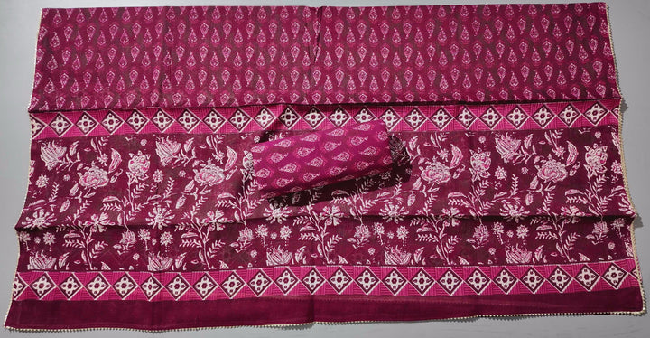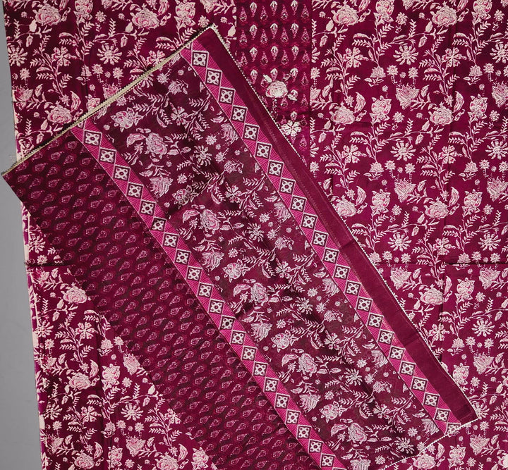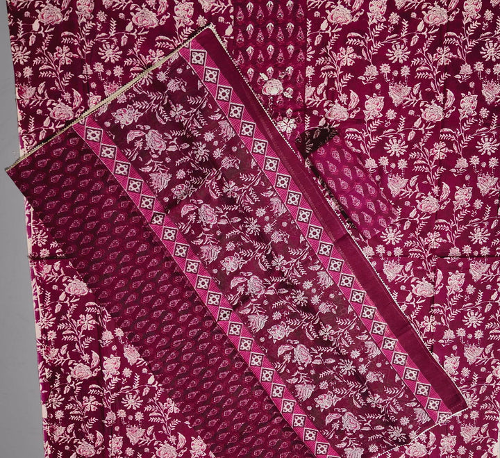 Transform any gathering into a celebration with our Majestic Magenta Unstitched Suit, perfect for festive occasions and traditional gatherings. This suit showcases a rich magenta hue adorned with intricate floral motifs that radiate charm and grace. Crafted from a high-quality fabric blend, it offers both comfort and elegance, designed to drape beautifully on every silhouette.\n\nThe exquisite floral patterns offer a touch of heritage design, making it an ideal choice for festivals, weddings, or any special event where you want to make a statement. The breathable fabric ensures all-day comfort, while the unstitched nature allows you to tailor it to your unique style and fit.\n\nEasy to maintain, this fabric requires minimal care—simply hand wash or dry clean to keep it looking fresh and vibrant. Add your personal touch with custom embellishments or style it alongside your favorite accessories to elevate your ethnic wardrobe instantly.\n\nEmbrace the fusion of tradition and modern aesthetics with this unstitched suit, and let your attire be the talk of the occasion!
