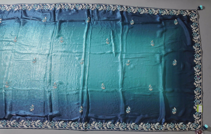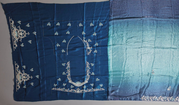 Unveil your fashion finesse with our 'Midnight Blossom' unstitched suit, a harmonious blend of sophistication and allure. This ensemble is a canvas of deep azure hues, adorned with delicate floral embroidery in contrasting whites and aqua blues, creating a mesmerizing dance of nature-inspired patterns. Crafted for the discerning fashion enthusiast, the fabric promises unmatched comfort and a graceful drape, making it ideal for evening soirées or festive gatherings.