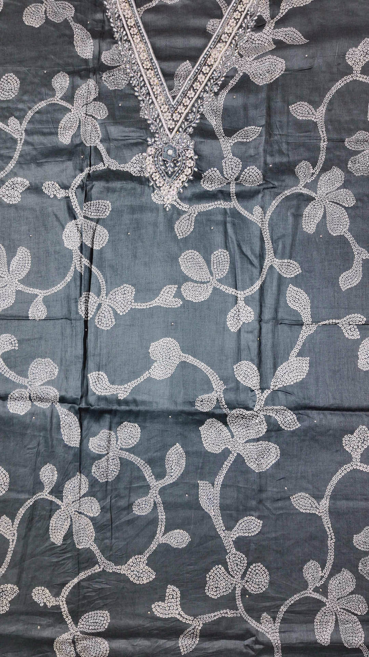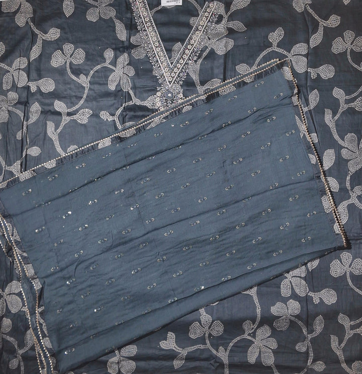 Midnight Blossom: Luxurious Unstitched Suit with Intricate Embroidery",
