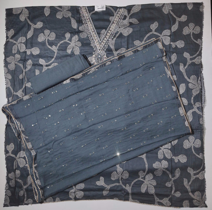 Elevate your wardrobe with the exquisite 'Midnight Blossom' unstitched suit, masterfully crafted to combine style and comfort. Featuring a deep, rich hue reminiscent of a tranquil night sky, and adorned with intricate floral embroidery, this piece is perfect for festive occasions or elegant gatherings. The premium fabric ensures maximum comfort and breathability, allowing you to move with ease while looking sophisticated. Designed for the discerning fashionista, this suit offers versatility, letting you tailor the fit to your unique style. Easy to care for and durable, the Midnight Blossom suit adds a touch of timeless elegance to your collection, promising to be a favorite for years to come.