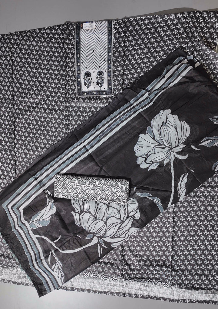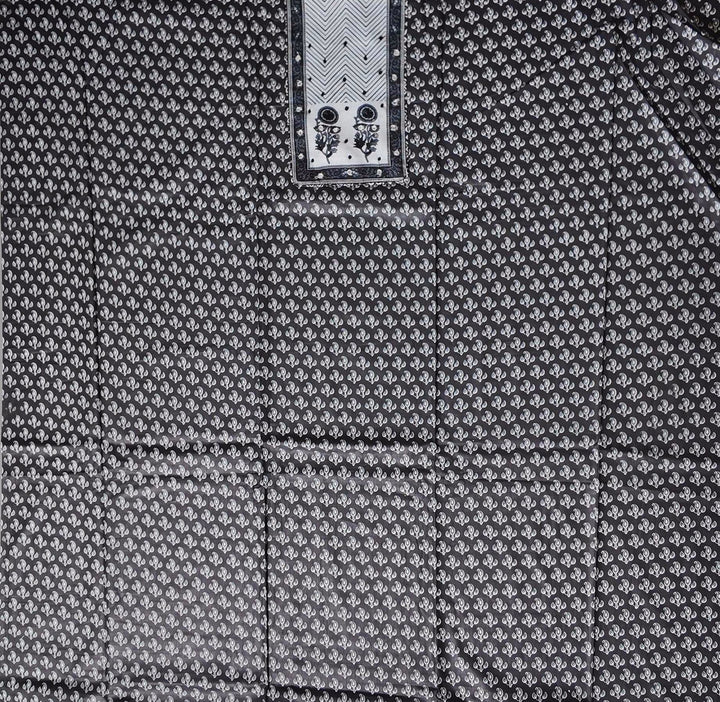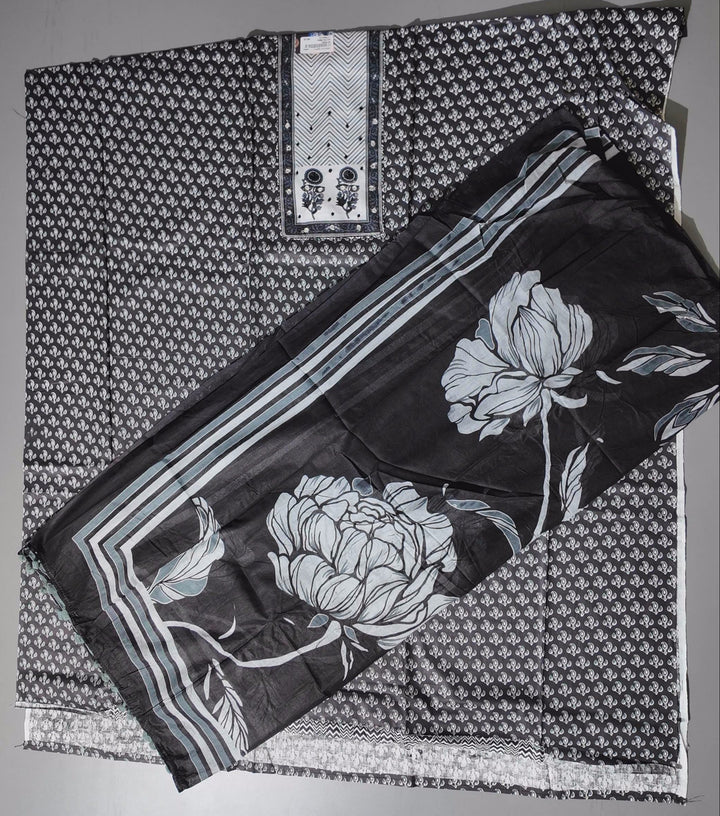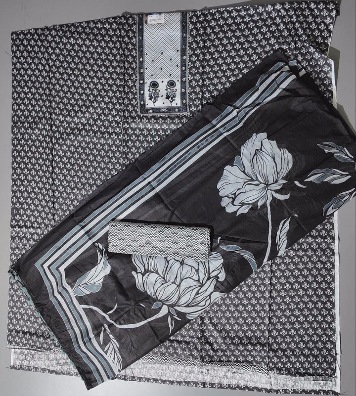Monochrome Majestic: Unstitched Ensemble with Intricate Floral Designs",