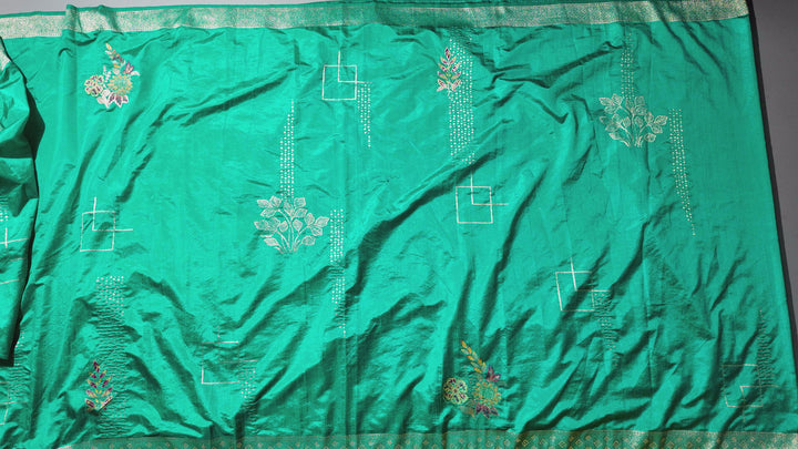 Opulent Floral Unstitched Suit in Vibrant Teal",