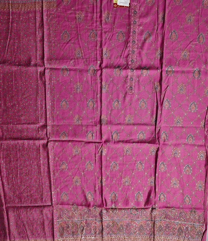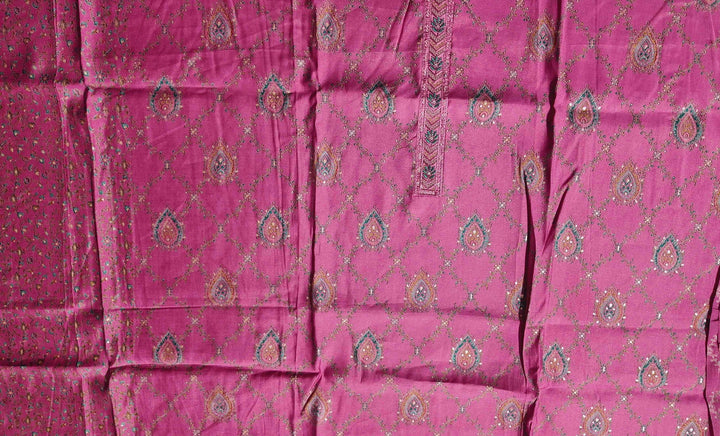 Ornate Fuchsia Dream: Unstitched Silk Suit with Intricate Motifs",