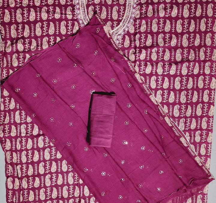Regal Paisley Ensemble: Unstitched Maroon Delight",