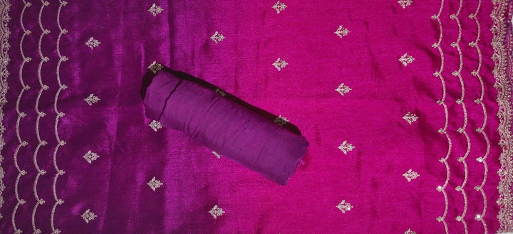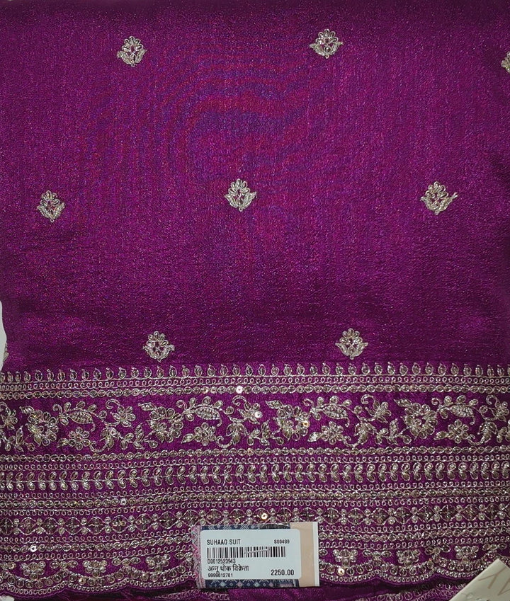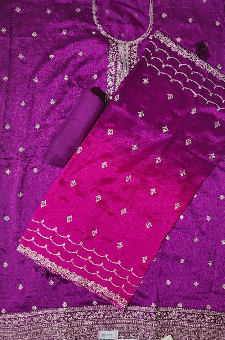 Regal Plum Unstitched Suit with Intricate Silver Embroidery",