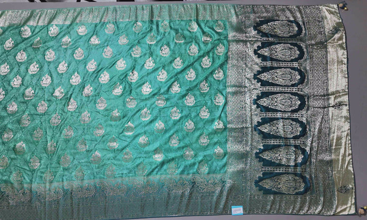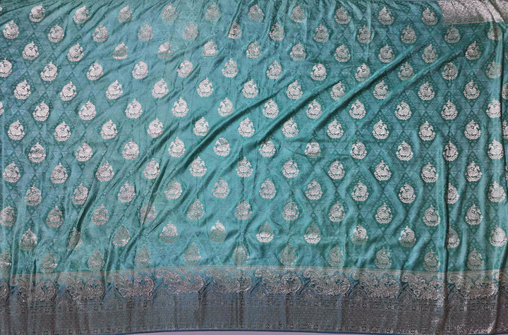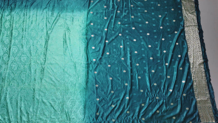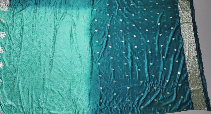 Regal Teal Tapestry: Luxury Unstitched Silk Ensemble",