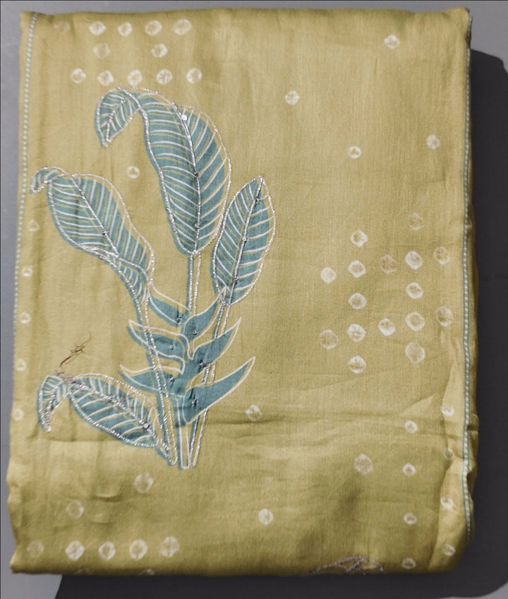 Step into the lap of nature-inspired fashion with our 'Serene Sage' unstitched suit. Crafted from breathable, high-quality fabric, this piece offers unrivaled comfort and style for any occasion. The tranquil sage green canvas is beautifully adorned with intricate leaf embroidery, adding a touch of artisanal charm. The subtle white dot pattern enhances its elegance, making it a perfect choice for both casual and festive gatherings. Enjoy the creative freedom to tailor it to your preferred fit and style. Easy to care for, simply hand wash in cold water to maintain its vibrant allure. Let 'Serene Sage' infuse your wardrobe with a fresh, artistic vibe at just ₹2290.0.