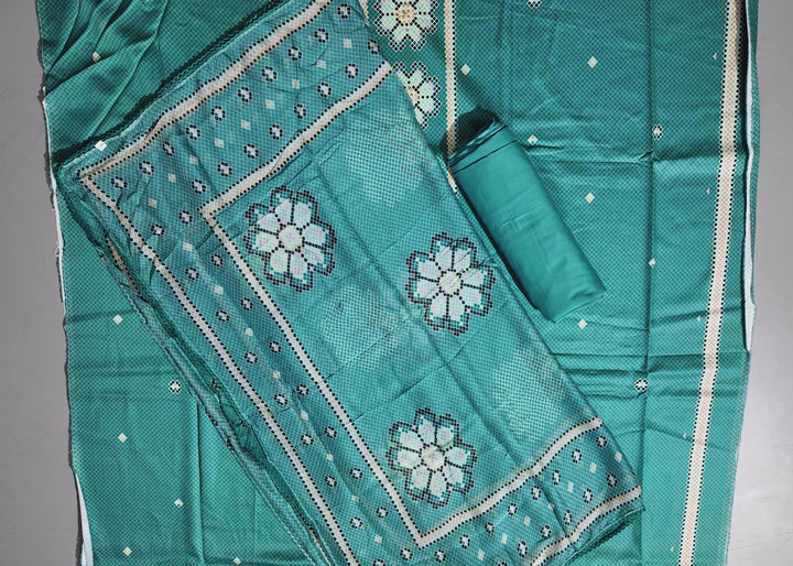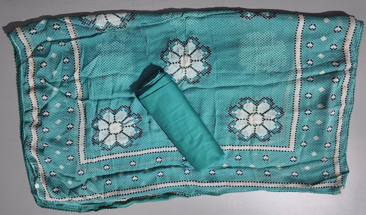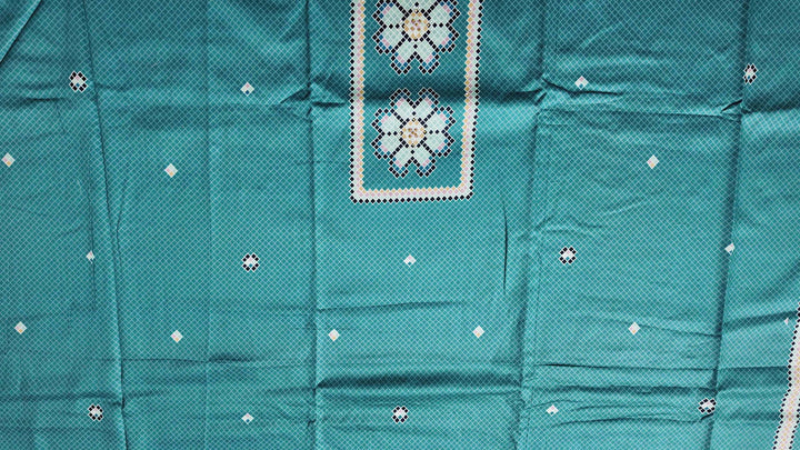 Step into a world of vibrant elegance with our exquisite unstitched suit, designed to elevate your style quotient. Woven from the finest fabric, this suit offers a luxurious feel against the skin, ensuring comfort throughout the day. The mesmerizing turquoise hue is adorned with intricate geometric patterns, bringing a touch of modern artistry to traditional wear.\n\nPerfect for festive gatherings or casual outings, this suit allows you to personalize your fashion statement by tailoring it to your exact measurements. Its breathable and lightweight material provides ease of movement, ensuring you remain comfortable and chic no matter the occasion.\n\nCaring for your suit is effortless—simply dry clean to maintain its vivid colors and intricate detailing. Dive into the fusion of tradition and contemporary design with this unstitched masterpiece, promising to leave a lasting impression wherever you go. Let this suit be your canvas for creativity and self-expression.\n\nBarcode: D0012521038\nPrice: ₹2020.0\n\nUnleash your inner designer and embrace the allure of unique fashion with this unstitched wonder!