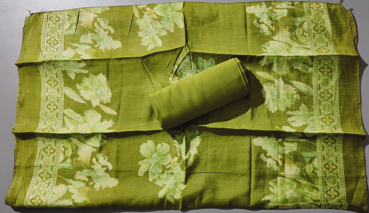 Verdant Bloom: Artisanal Unstitched Suit in Lush Green",