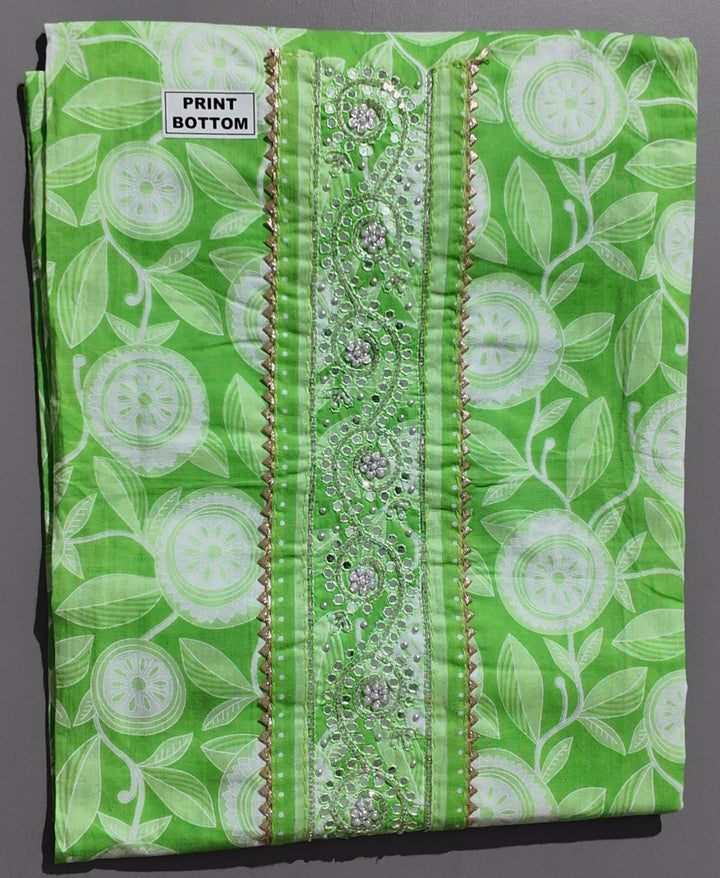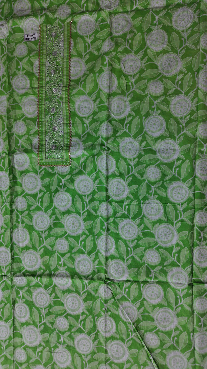 Vibrant Green Botanical Unstitched Suit with Intricate Embroidery",