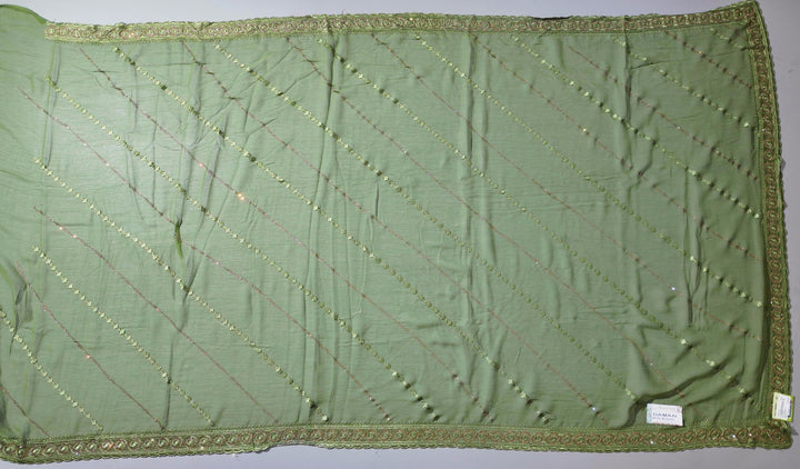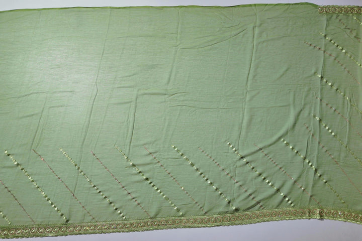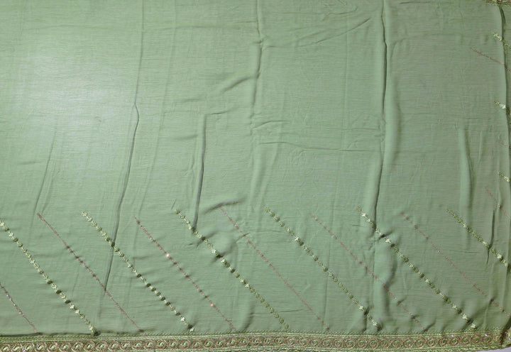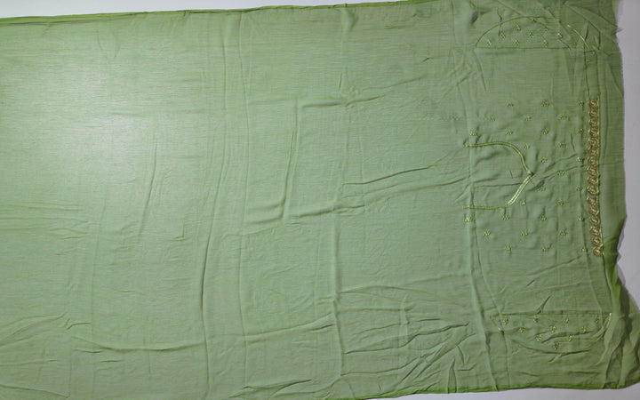 Immerse yourself in the allure of this exquisite unstitched suit, featuring a mesmerizing olive green hue reminiscent of lush garden landscapes. This ensemble exudes sophistication with its intricate embroidery, gracefully outlining the borders, and delicately cascading in a shimmering tapestry of golden threads. Perfect for festive celebrations or intimate gatherings, this piece offers versatility and style in abundance. \n\nMade from premium quality fabric, this suit promises unmatched comfort, allowing you to glide through your events with ease and grace. The fabric's soft texture ensures breathability, making it suitable for different climates. The unstitched nature of the suit provides the splendid opportunity to tailor the ensemble to your unique measurements and style preferences, ensuring a perfect fit every time. \n\nThe intricate design adds a dash of majestic opulence, blending tradition with contemporary flair. Pair with statement jewelry to elevate its rich, detailed work, or layer with minimalist accessories for a modern twist. Easy to care for, maintain its luxurious sheen by gentle hand washing or dry cleaning. Transform any event into a memorable occasion with this remarkable piece that speaks elegance with every stitch. Priced at ₹1570, seize the chance to add this versatile masterpiece to your wardrobe today!